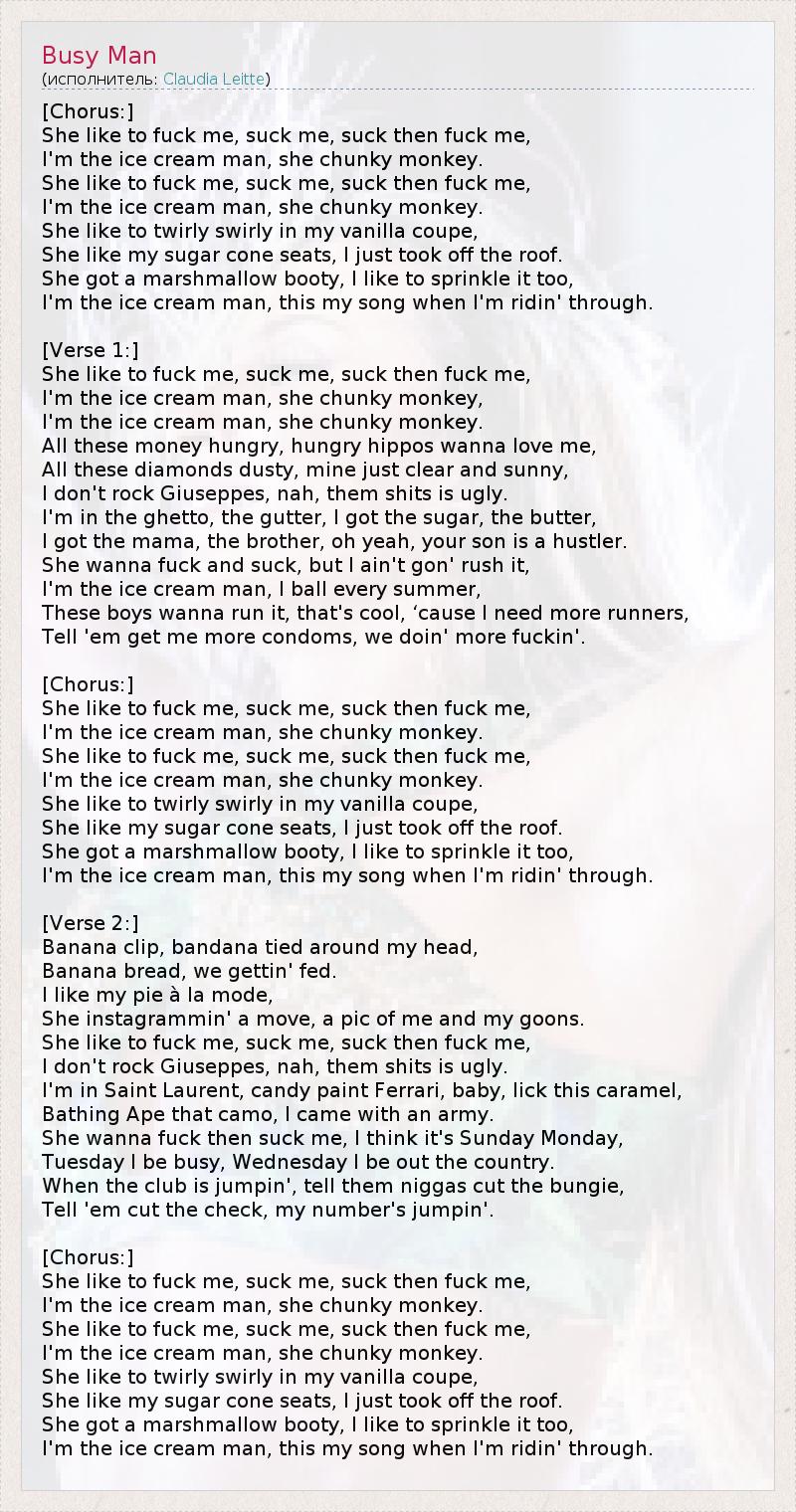 Она любит тр**ать меня, сосать у меня, сосать, а после тр**ать,