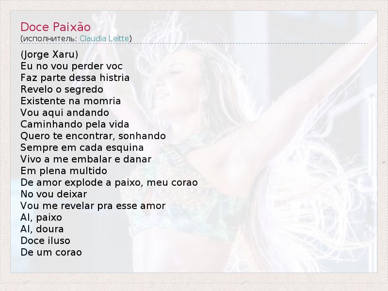 А как ты думаешь, о чем песня "Doce Paixão" ?