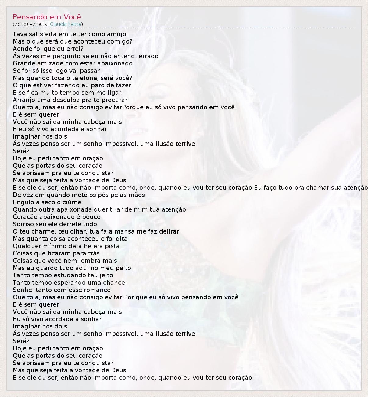 А как ты думаешь, о чем песня "Pensando em Você" ?