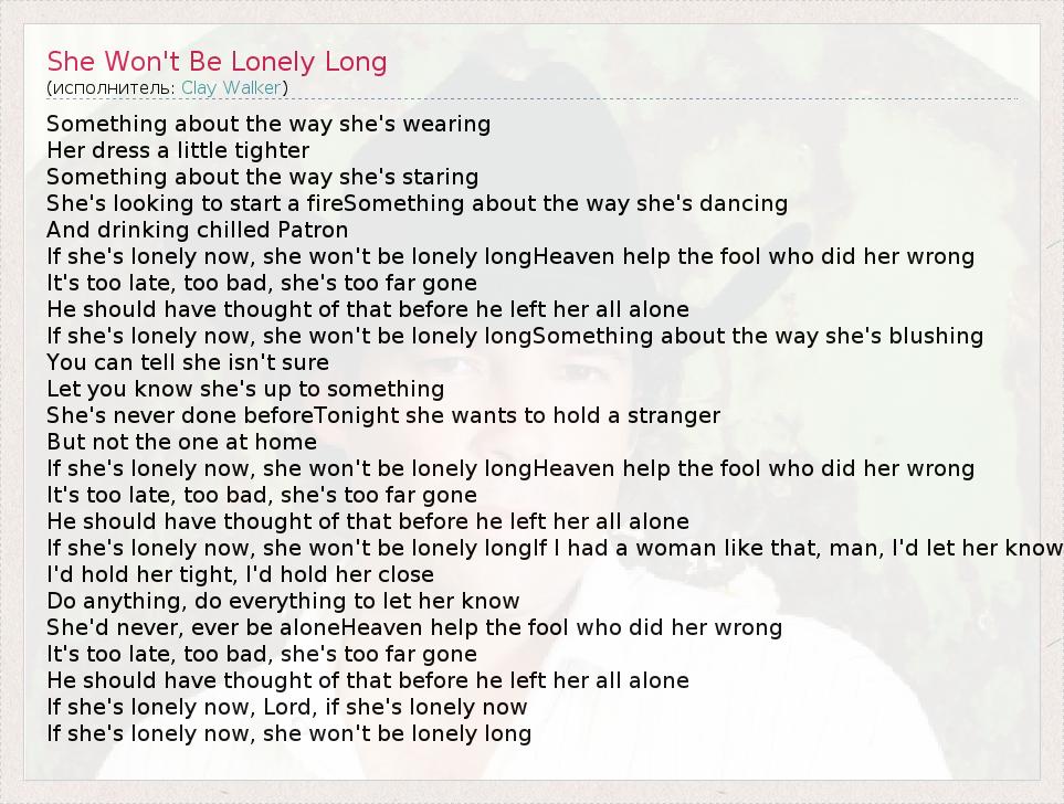 А как ты думаешь, о чем песня "She Won't Be Lonely Long" ?