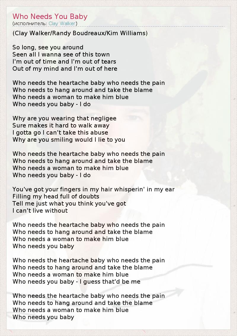 А как ты думаешь, о чем песня "Who Needs You Baby" ?
