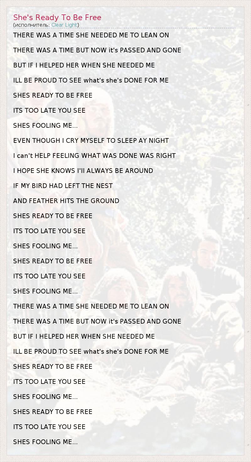 А как ты думаешь, о чем песня "She's Ready To Be Free" ?