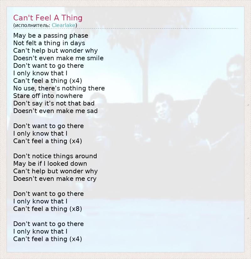 Can't Feel A Thing