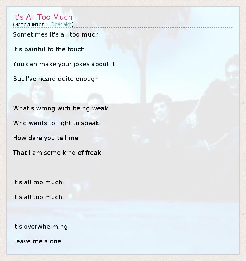А как ты думаешь, о чем песня "It's All Too Much" ?