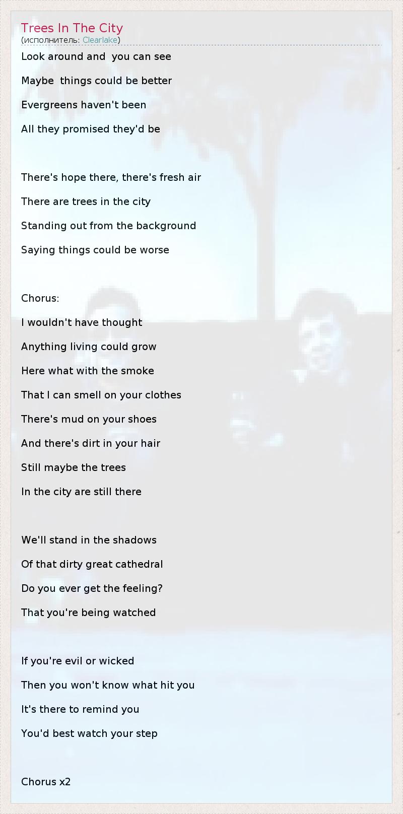 А как ты думаешь, о чем песня "Trees In The City" ?