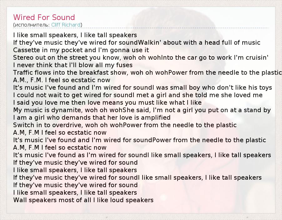 А как ты думаешь, о чем песня "Wired For Sound" ?