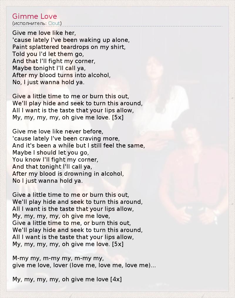 А как ты думаешь, о чем песня "Gimme Love" ?