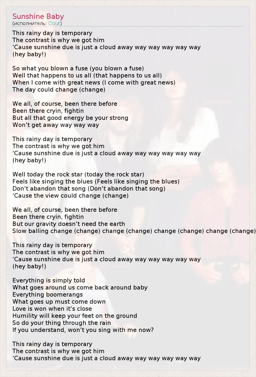 А как ты думаешь, о чем песня "Sunshine Baby" ?