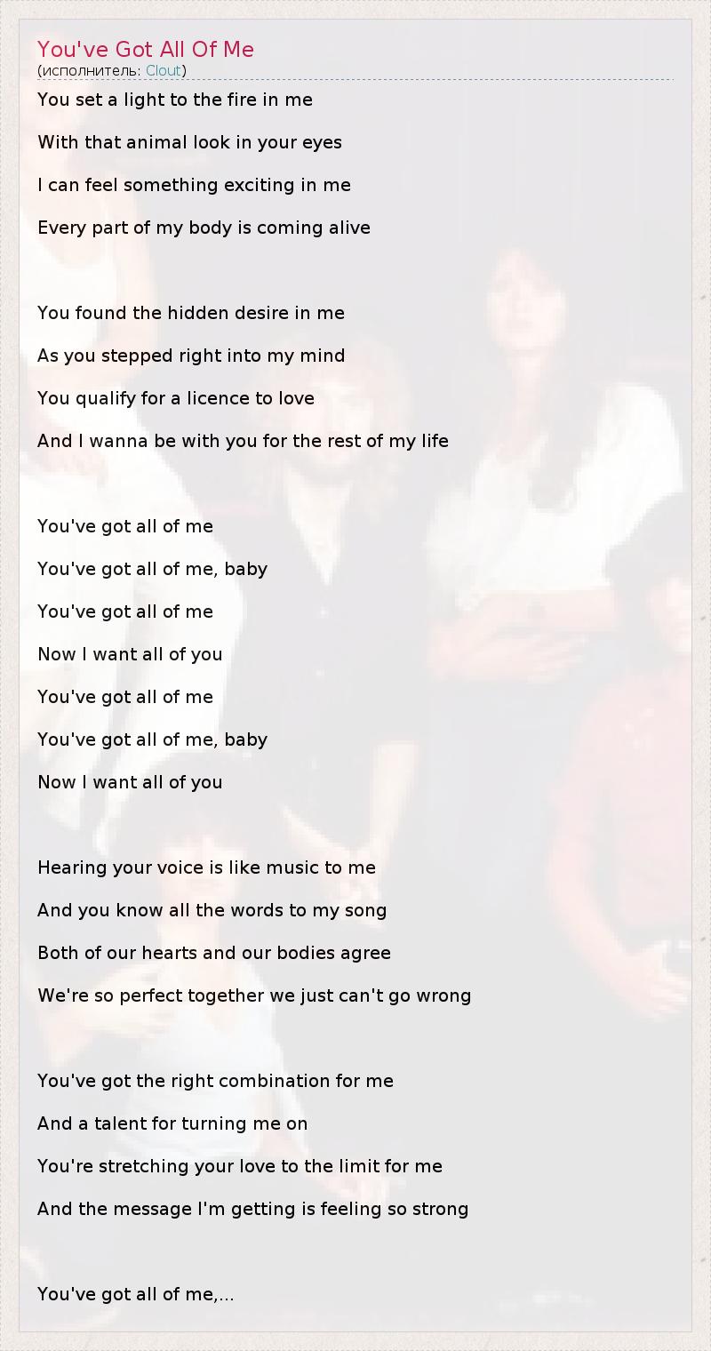ГлавнаяИсполнителиCloutYou've Got All Of Me