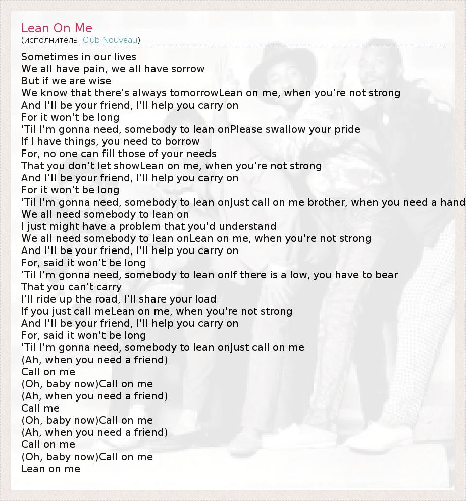 А как ты думаешь, о чем песня "Lean On Me" ?