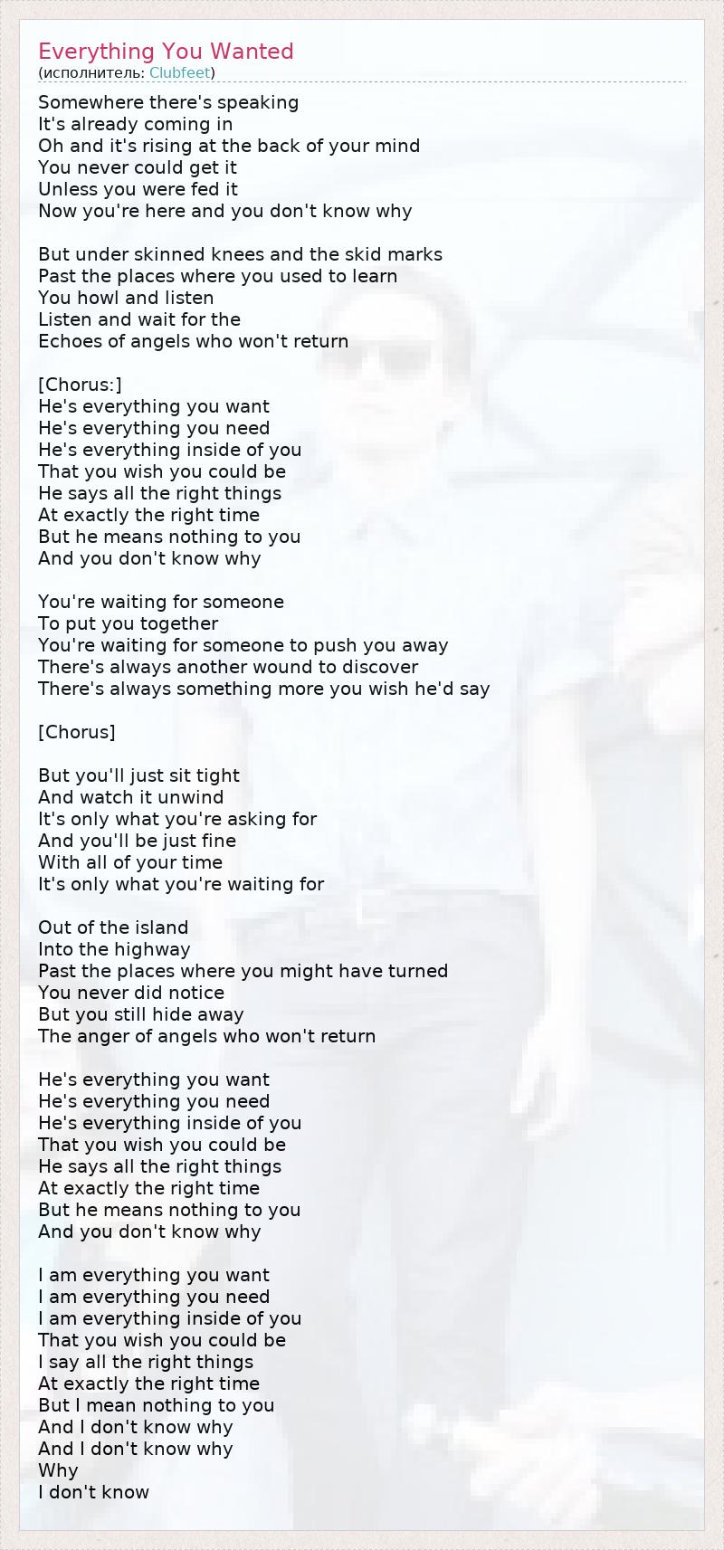 ГлавнаяИсполнителиClubfeetEverything You Wanted