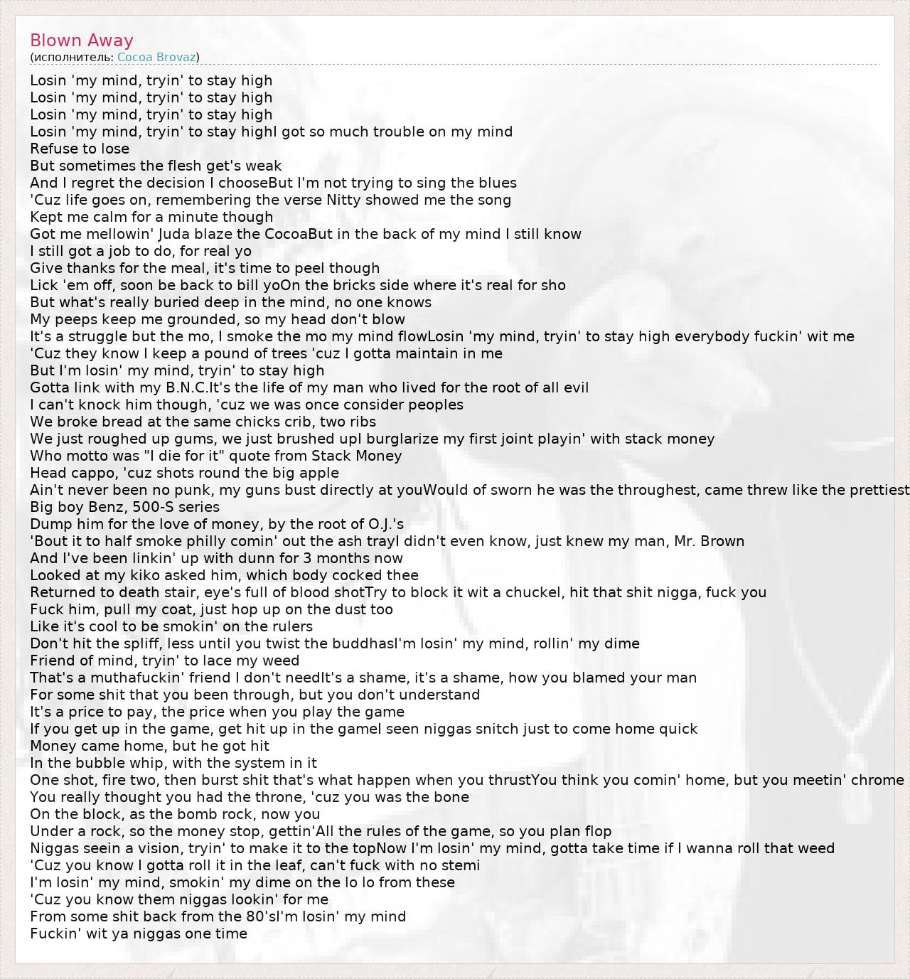 Got me mellowin' Juda blaze the CocoaBut in the back of my mind I still know