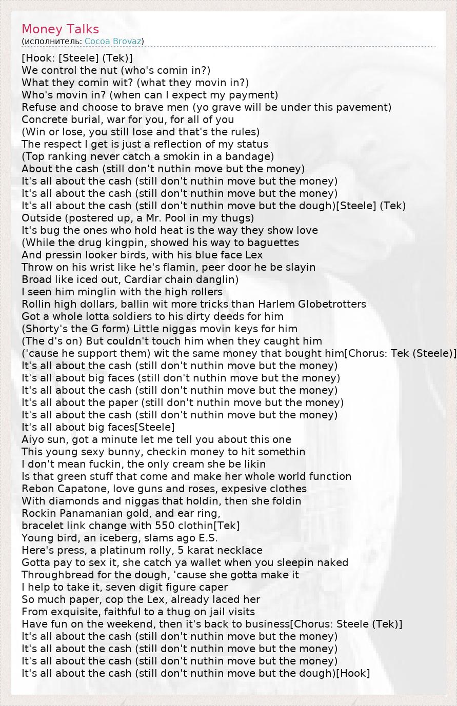 А как ты думаешь, о чем песня "Money Talks" ?