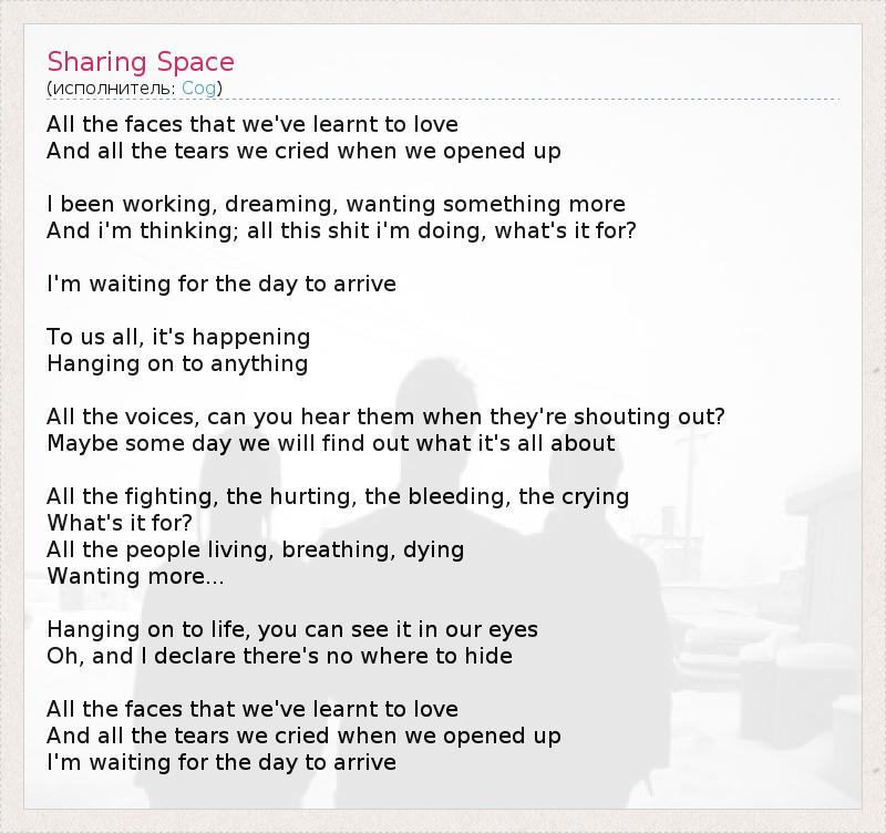 А как ты думаешь, о чем песня "Sharing Space" ?