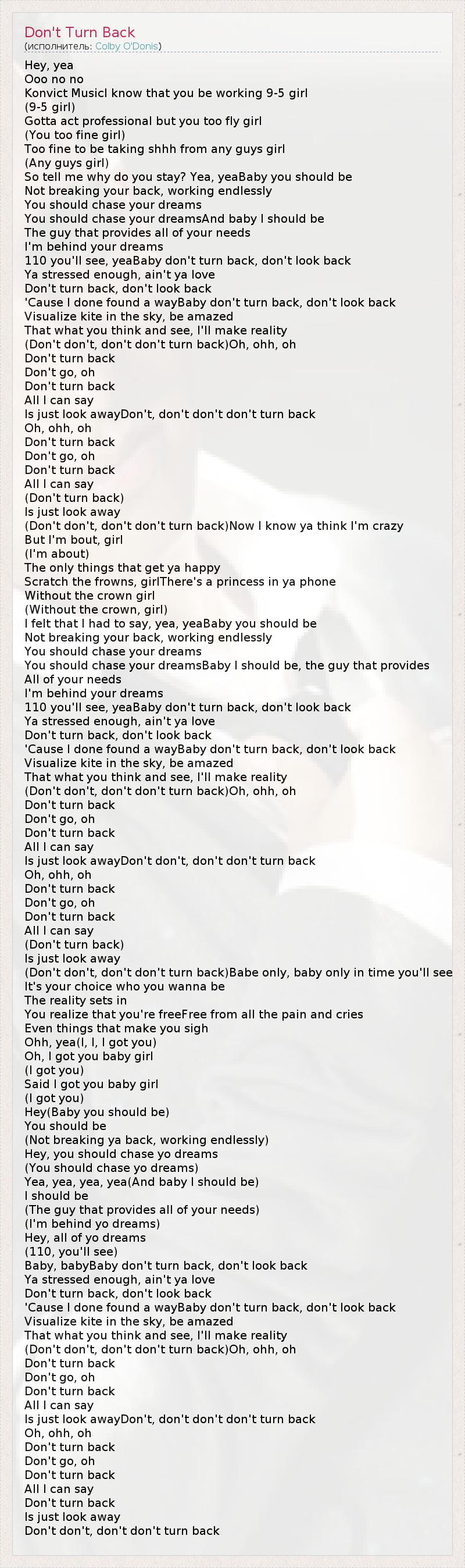 А как ты думаешь, о чем песня "Don't Turn Back" ?