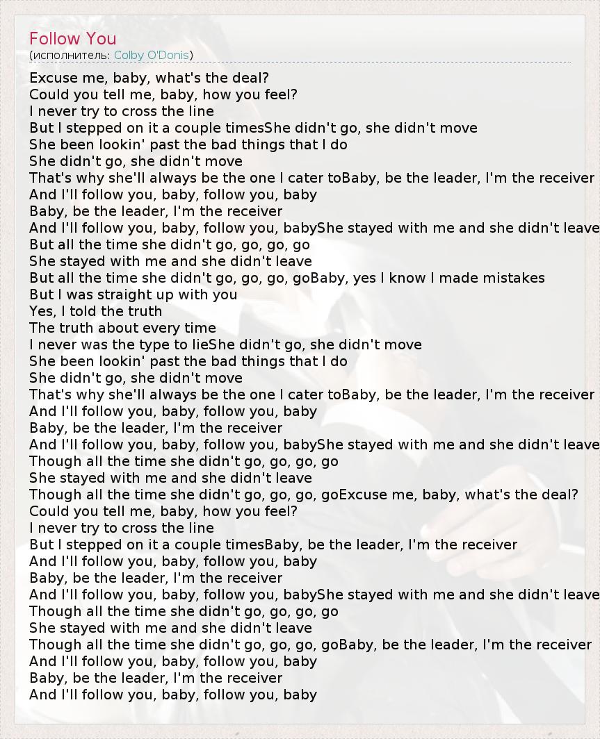 And I'll follow you, baby, follow you, babyShe stayed with me and she didn't leave