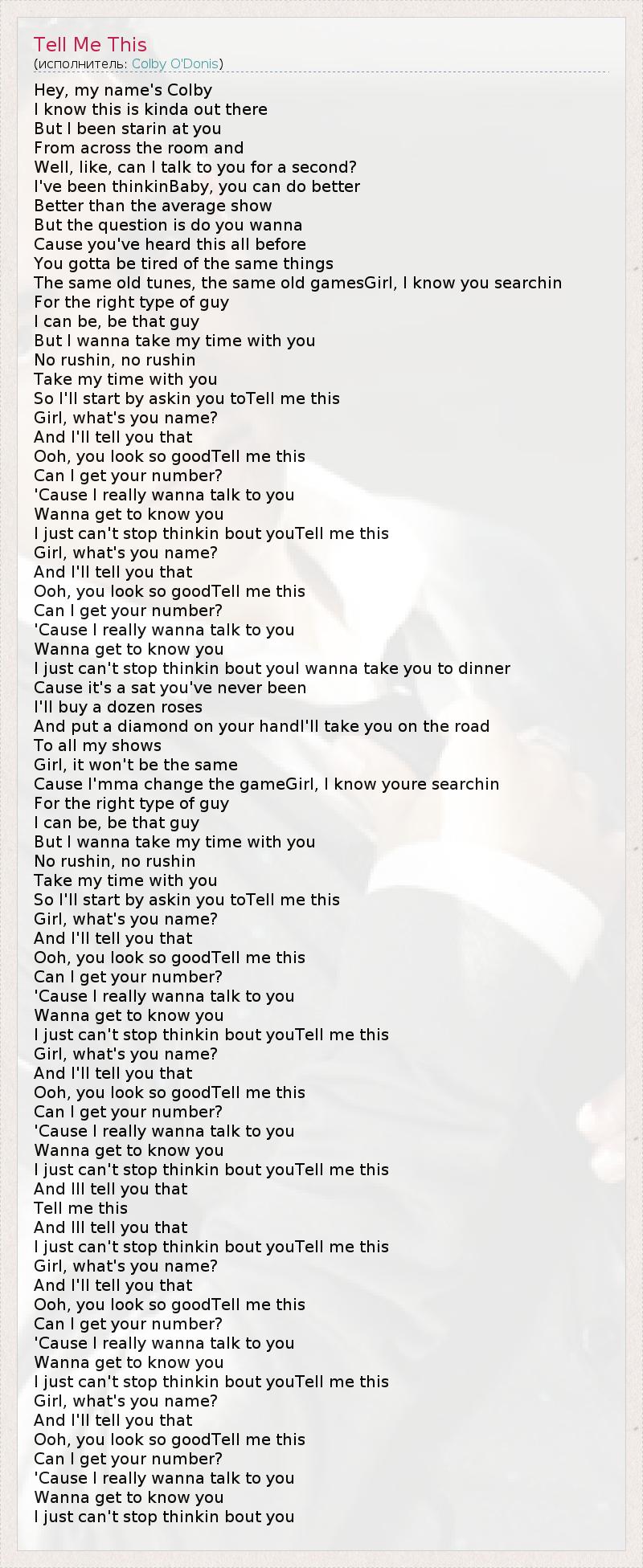 А как ты думаешь, о чем песня "Tell Me This" ?