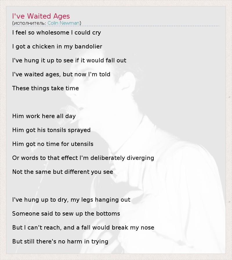 А как ты думаешь, о чем песня "I've Waited Ages" ?