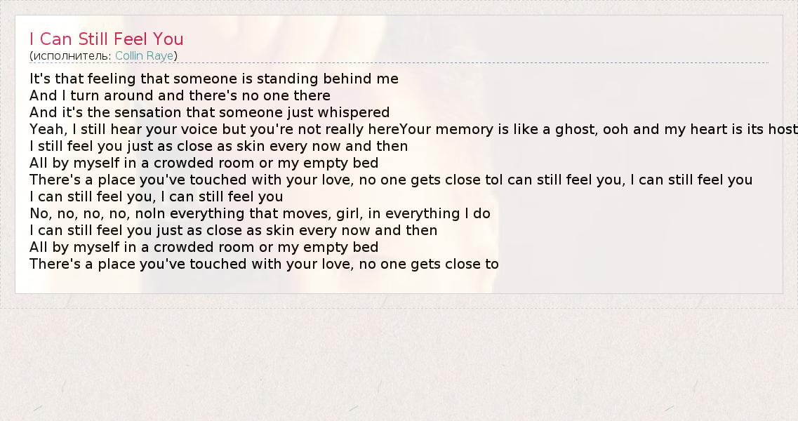 А как ты думаешь, о чем песня "I Can Still Feel You" ?