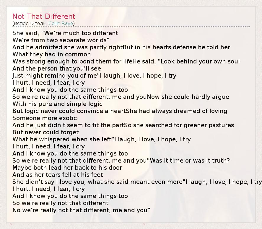 А как ты думаешь, о чем песня "Not That Different" ?