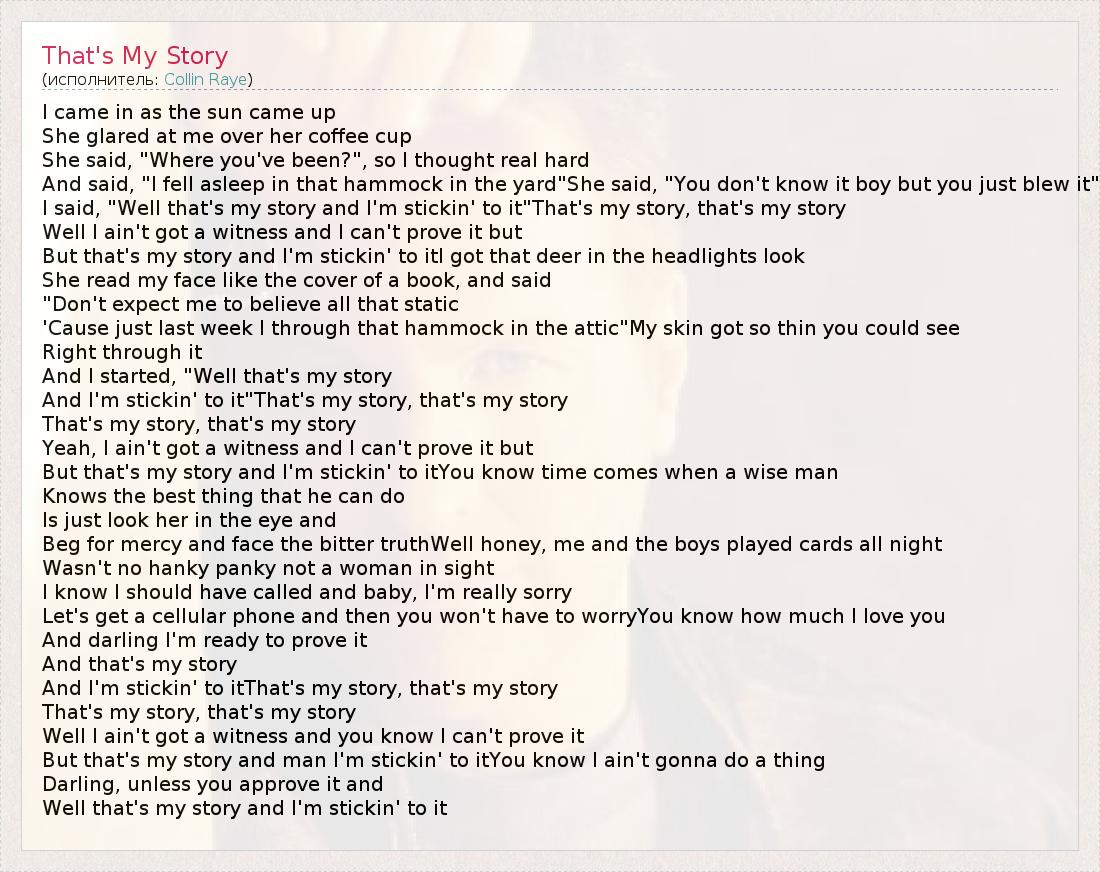I said, "Well that's my story and I'm stickin' to it"That's my story, that's my story