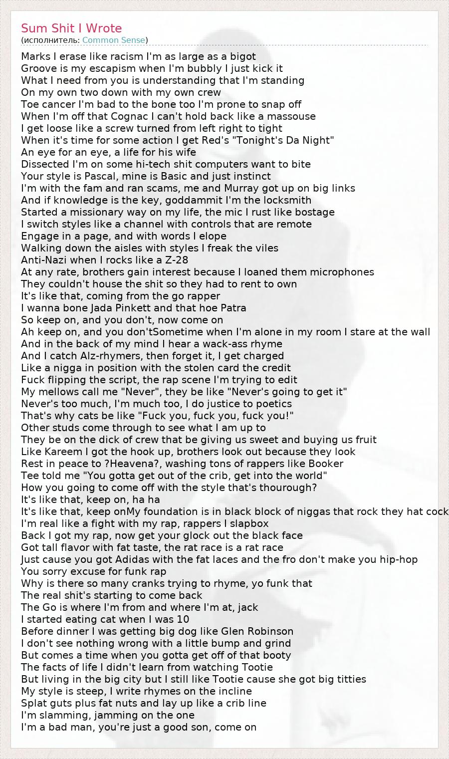 А как ты думаешь, о чем песня "Sum Shit I Wrote" ?