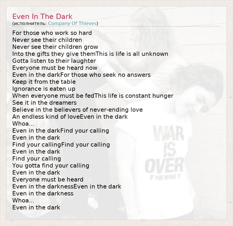 А как ты думаешь, о чем песня "Even In The Dark" ?