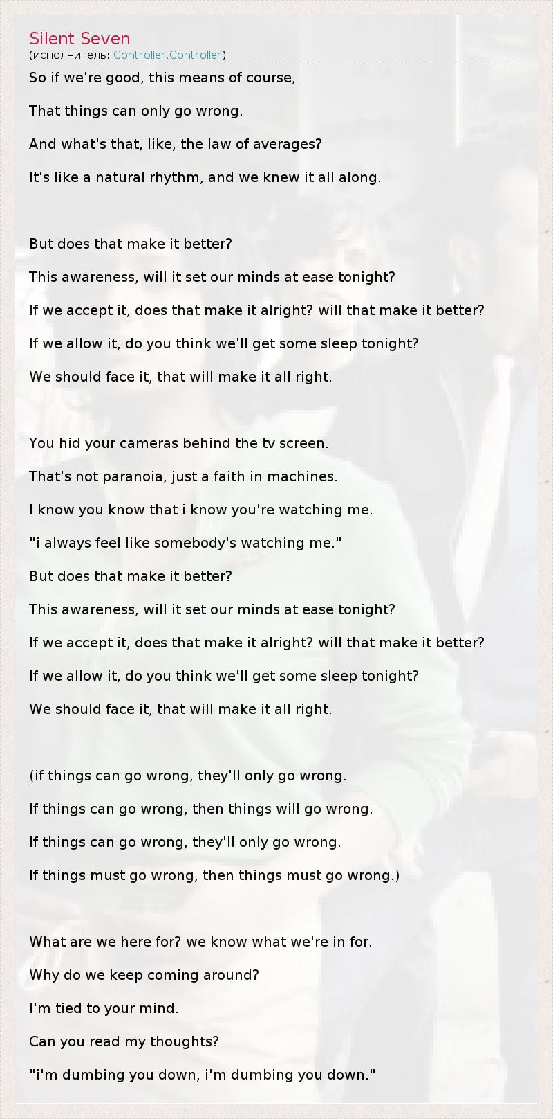 А как ты думаешь, о чем песня "Silent Seven" ?