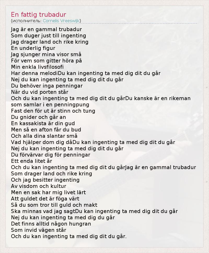 А как ты думаешь, о чем песня "En fattig trubadur" ?