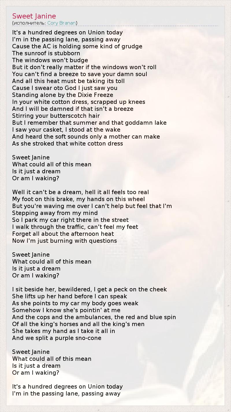 А как ты думаешь, о чем песня "Sweet Janine" ?