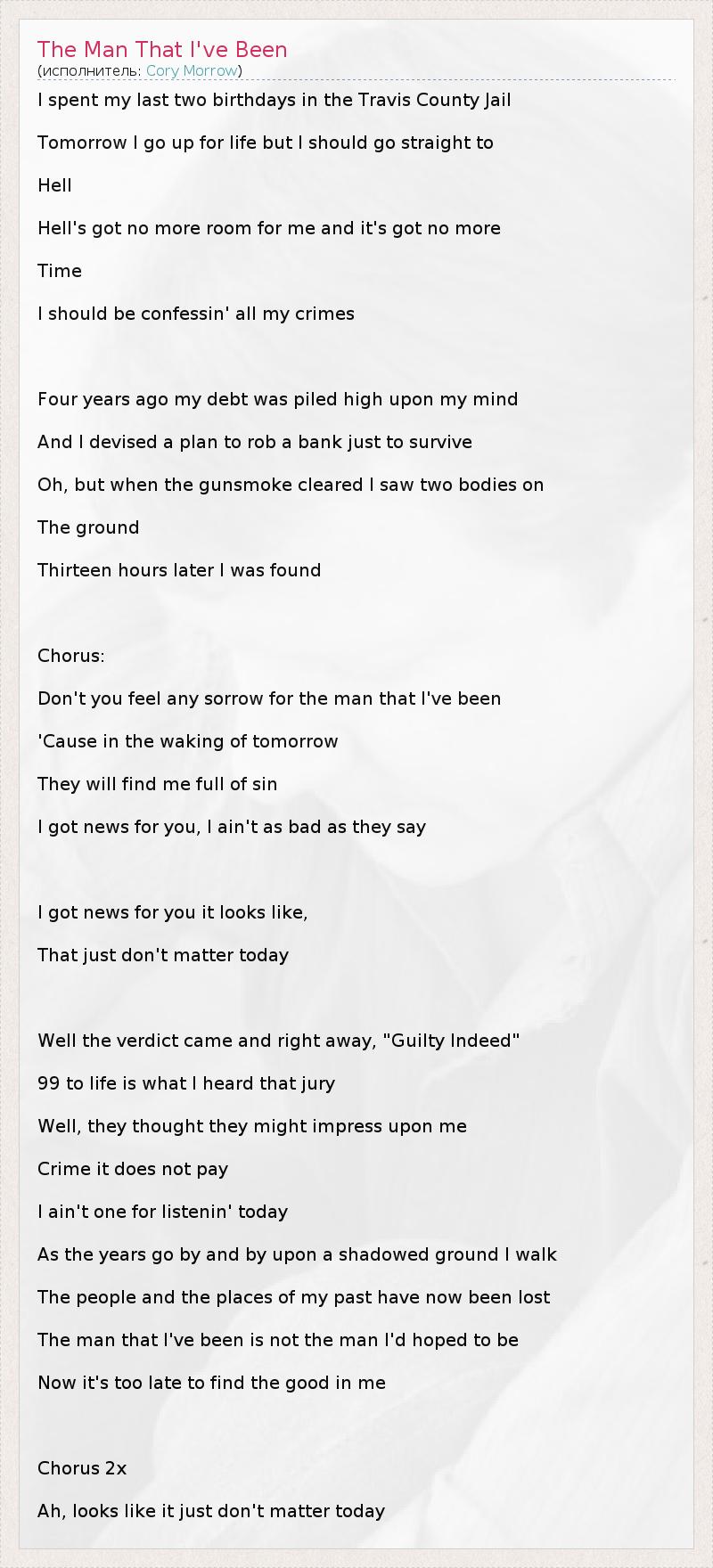 А как ты думаешь, о чем песня "The Man That I've Been" ?
