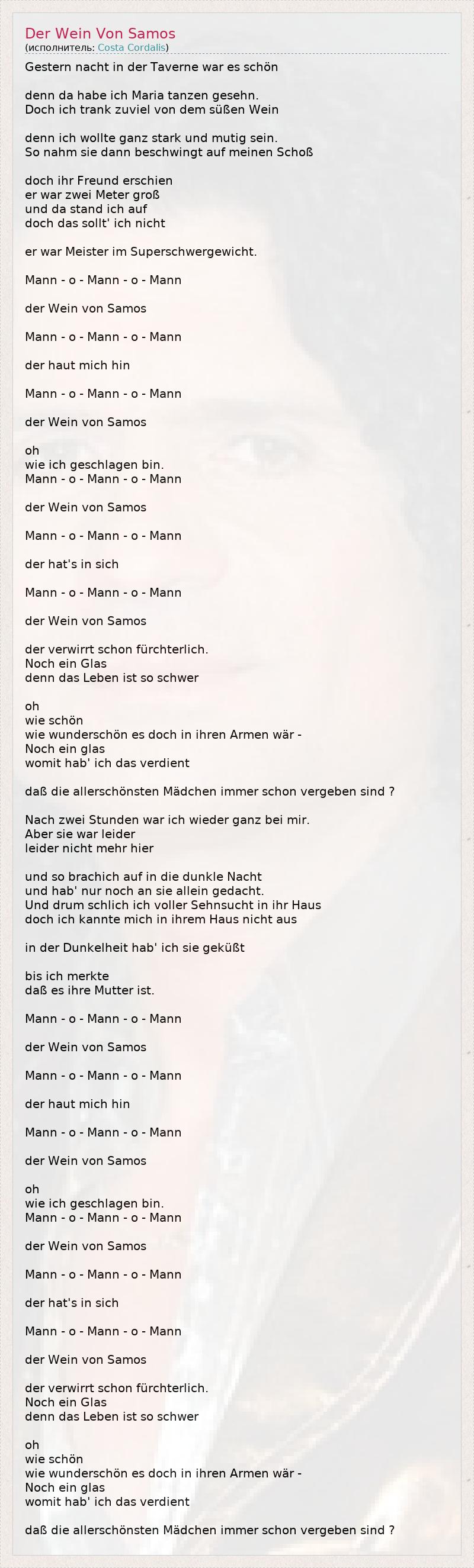А как ты думаешь, о чем песня "Der Wein Von Samos" ?
