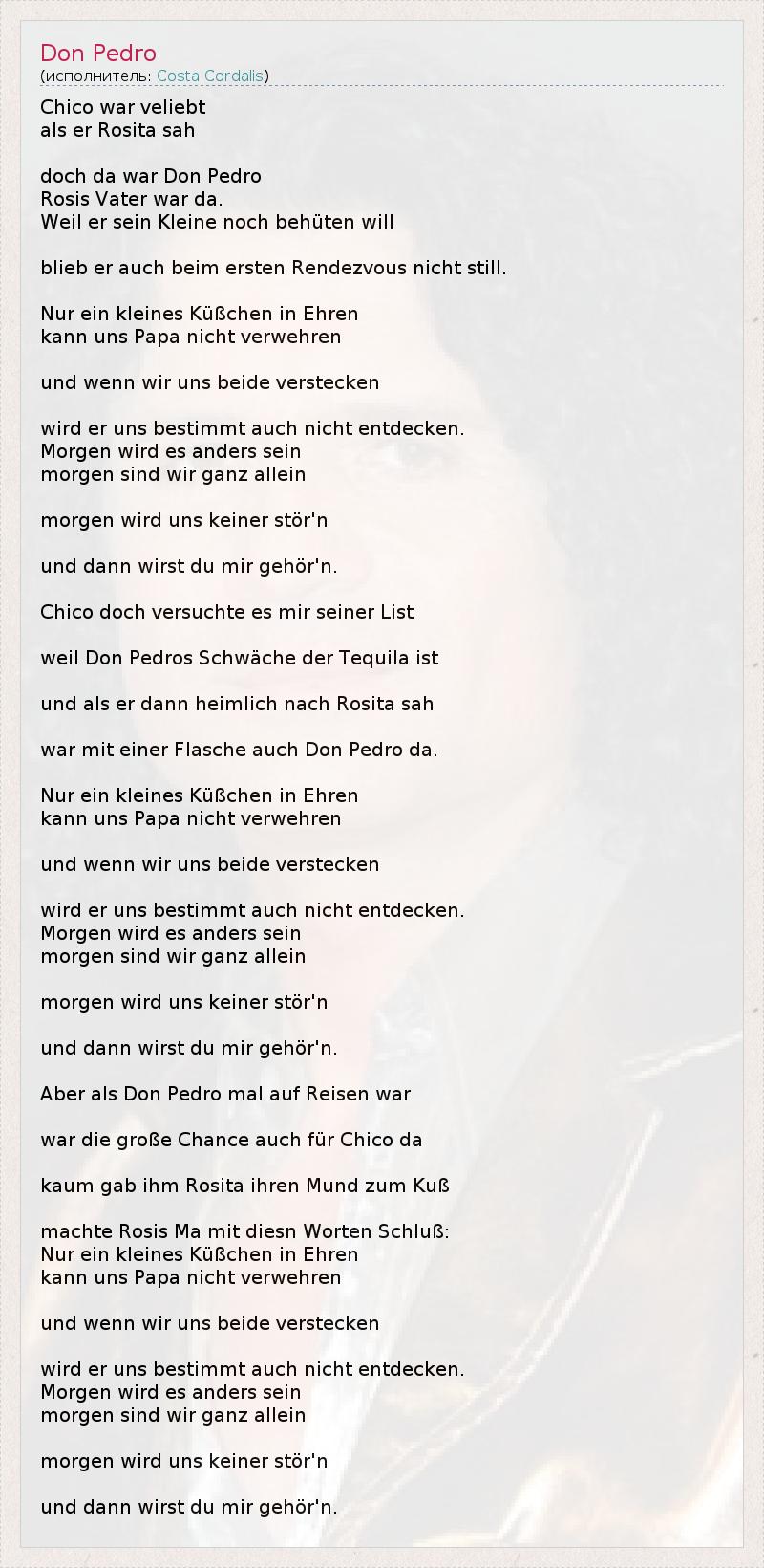 А как ты думаешь, о чем песня "Don Pedro" ?