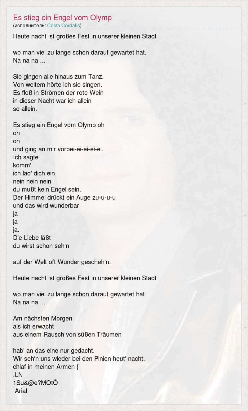 А как ты думаешь, о чем песня "Es stieg ein Engel vom Olymp" ?