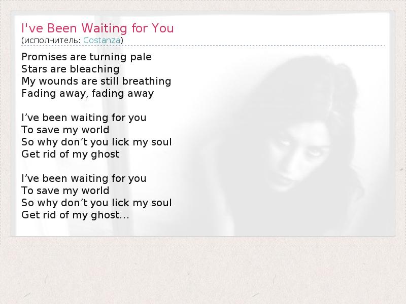 А как ты думаешь, о чем песня "I've Been Waiting for You" ?