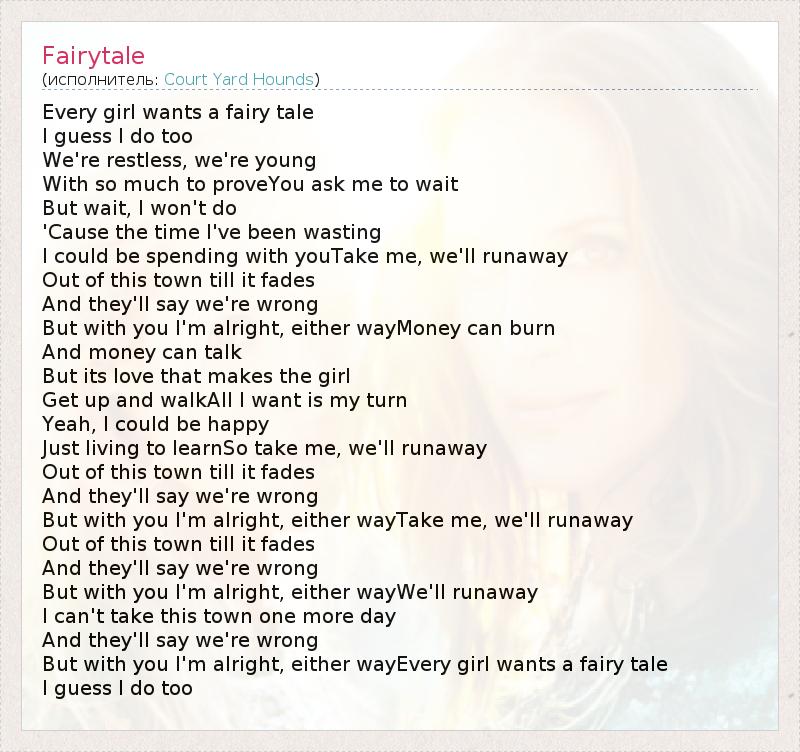 But with you I'm alright, either wayEvery girl wants a fairy tale