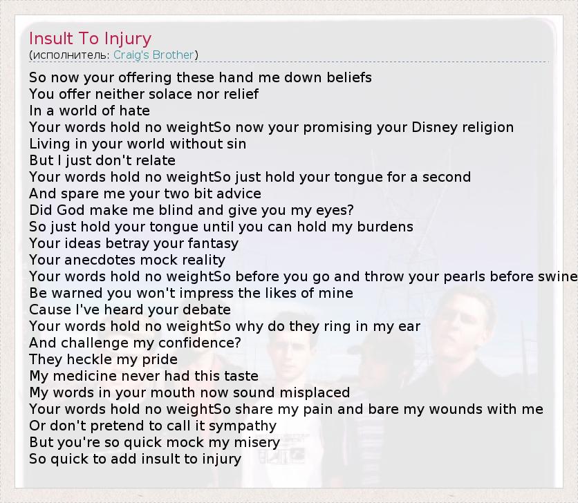 А как ты думаешь, о чем песня "Insult To Injury" ?