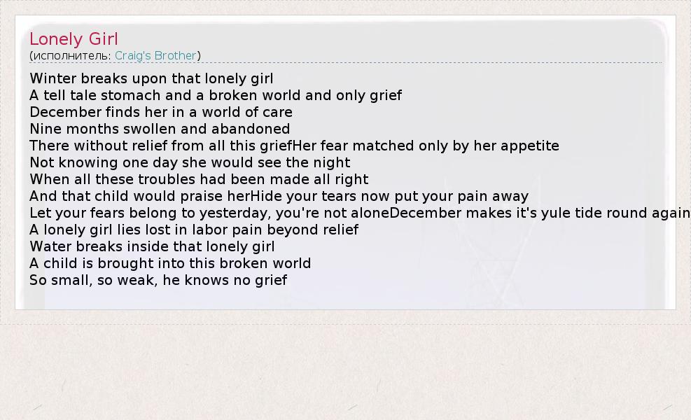 А как ты думаешь, о чем песня "Lonely Girl" ?
