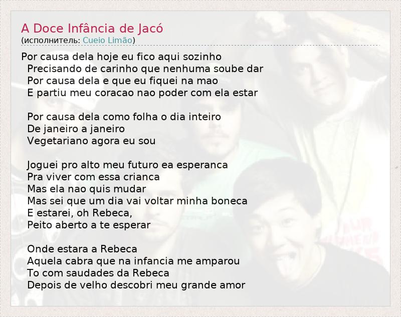 ГлавнаяИсполнителиCueio LimãoA Doce Infância de Jacó