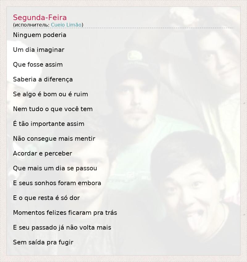 А как ты думаешь, о чем песня "Segunda-Feira" ?
