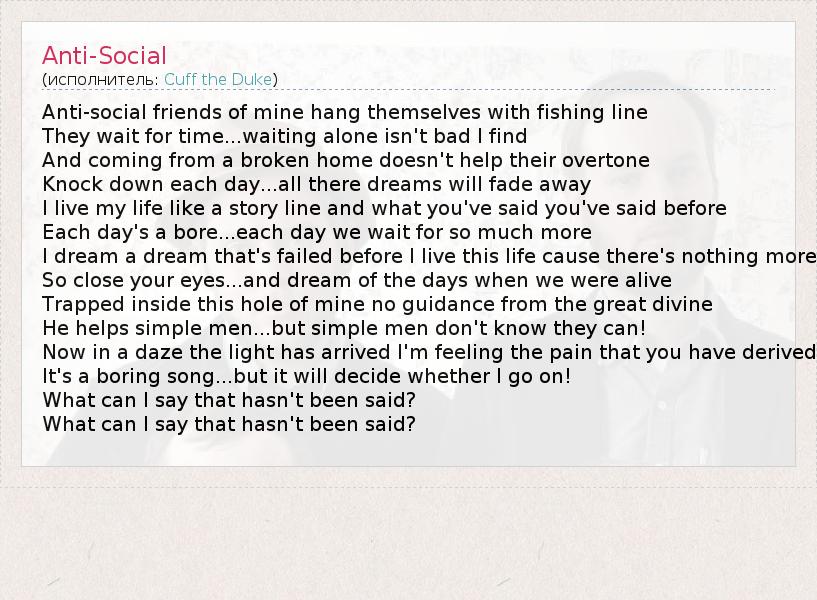 А как ты думаешь, о чем песня "Anti-Social" ?