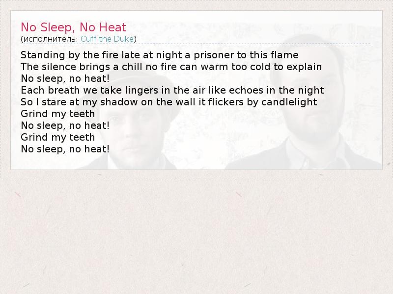 А как ты думаешь, о чем песня "No Sleep, No Heat" ?
