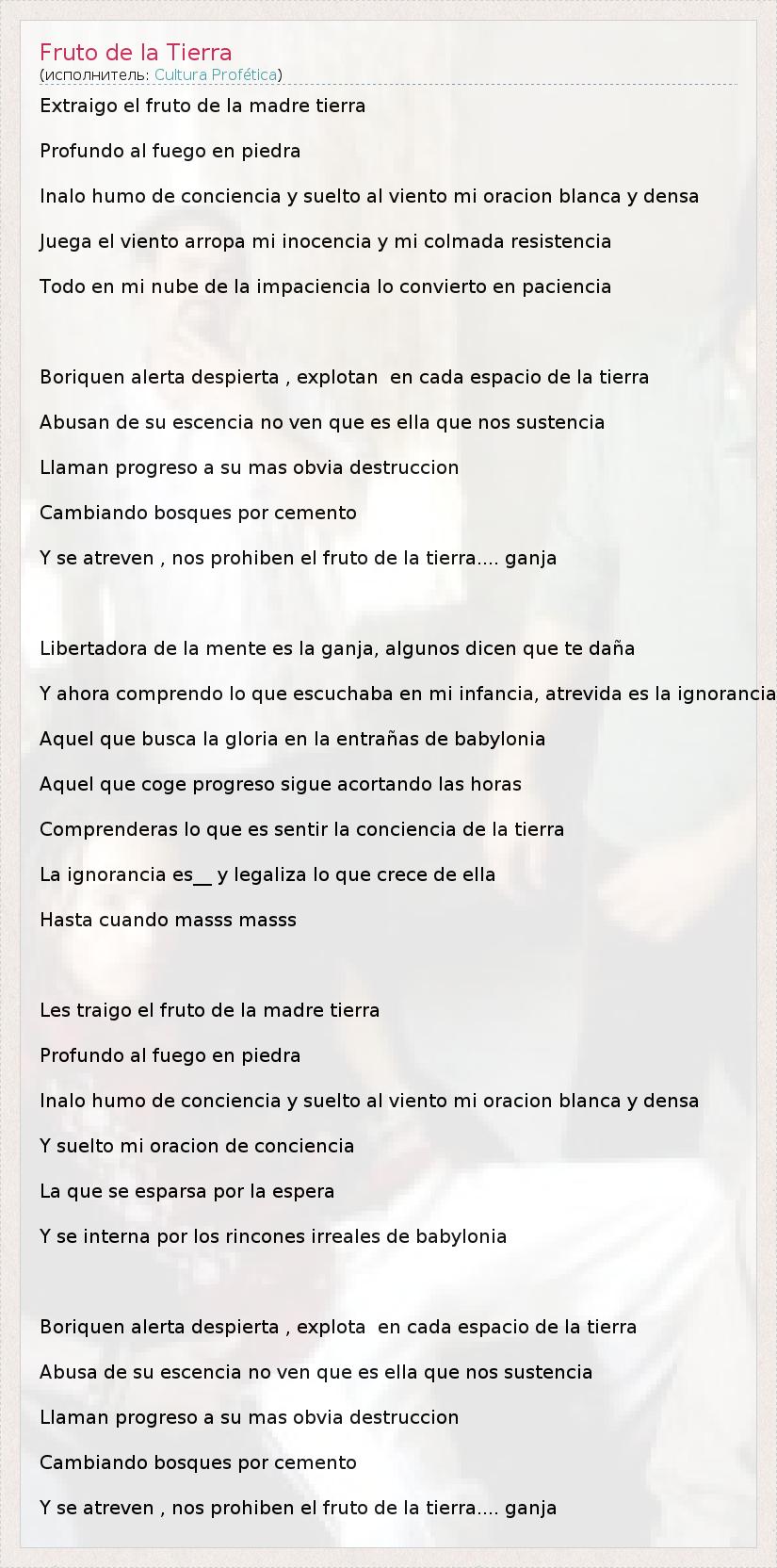 А как ты думаешь, о чем песня "Fruto de la Tierra" ?