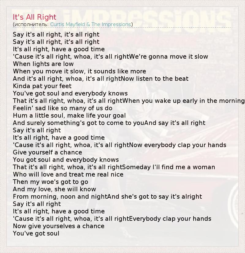 'Cause it's all right, whoa, it's all rightEverybody clap your hands