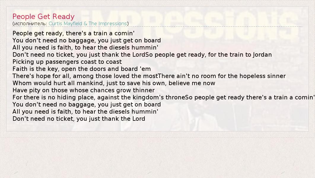 А как ты думаешь, о чем песня "People Get Ready" ?