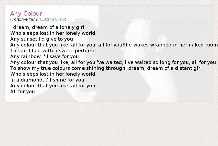 Any colour that you like, all for youI've waited, I've waited so long for you, all for you