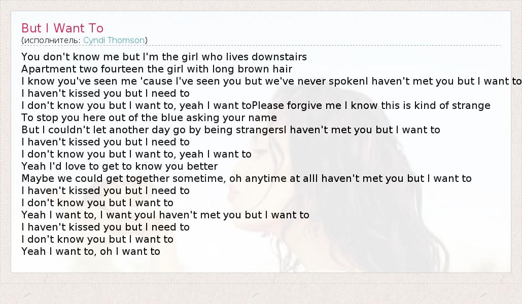 Yeah I want to, I want youI haven't met you but I want to