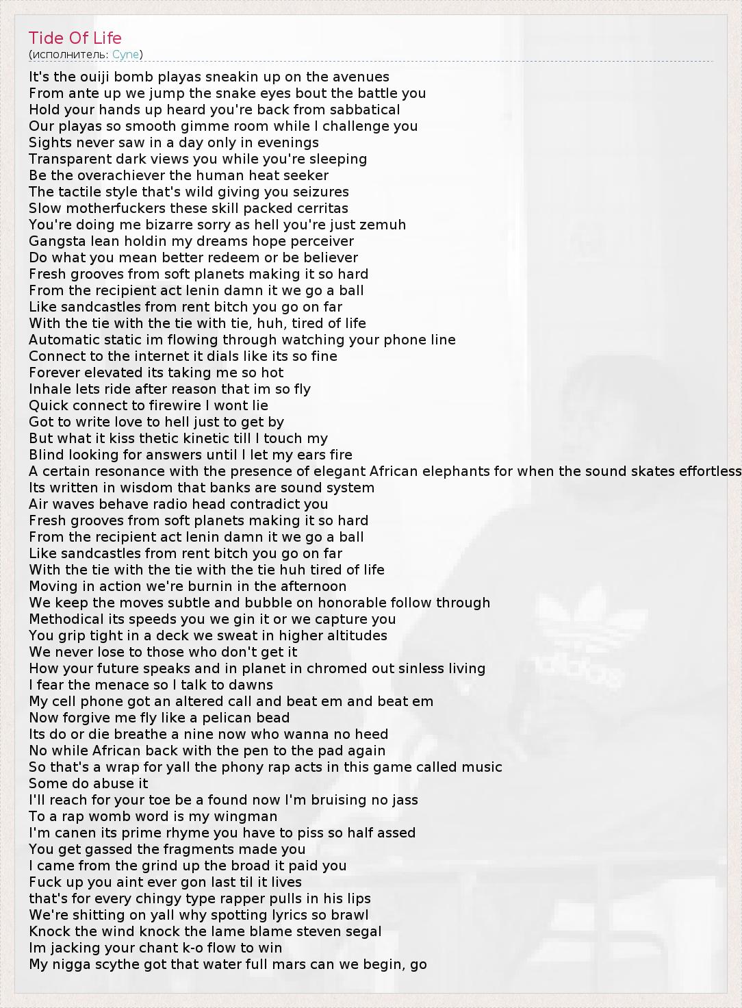 А как ты думаешь, о чем песня "Tide Of Life" ?