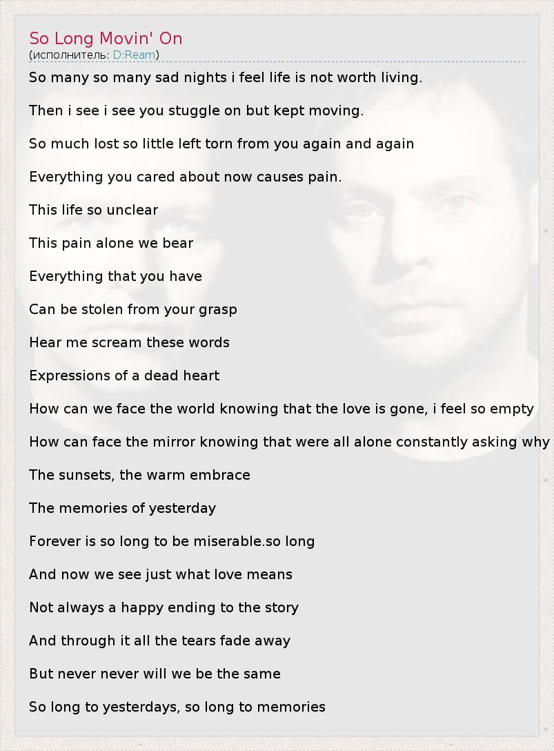 А как ты думаешь, о чем песня "So Long Movin' On" ?