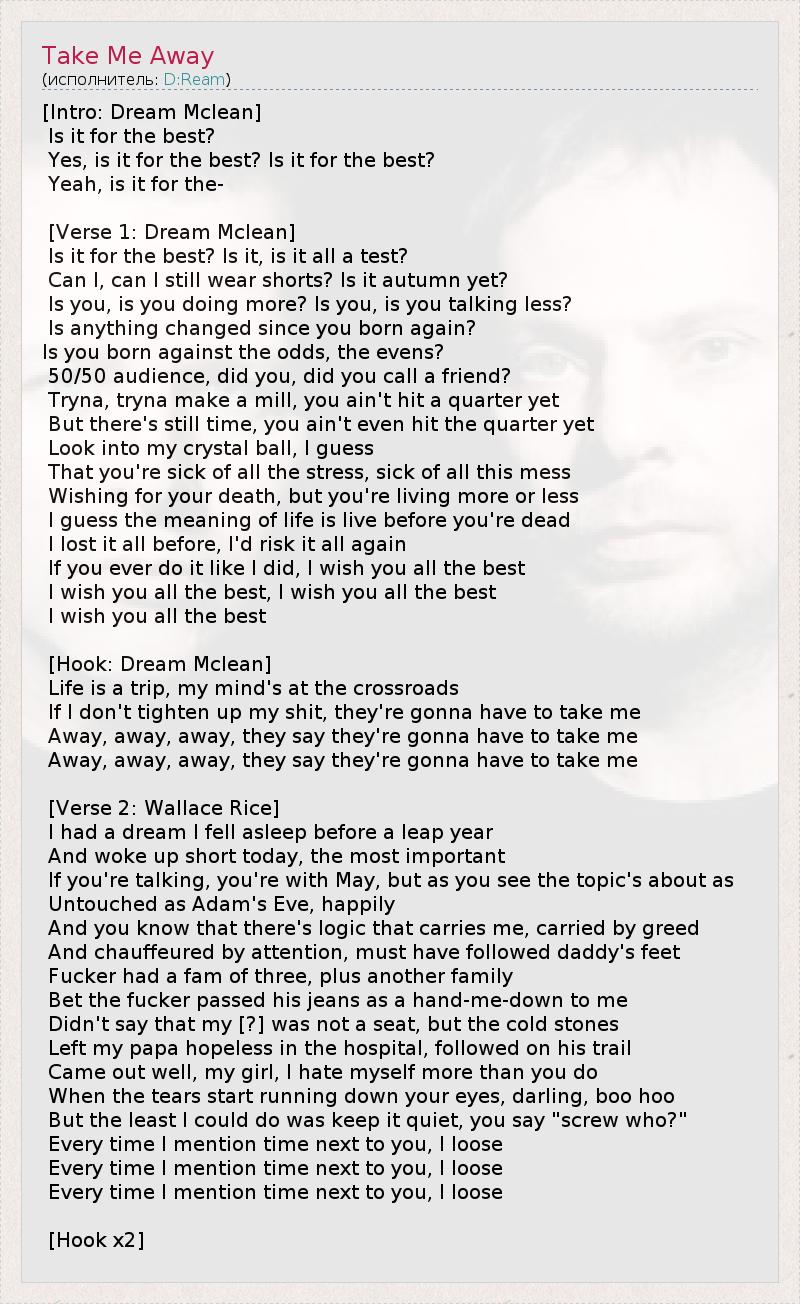 А как ты думаешь, о чем песня "Take Me Away" ?